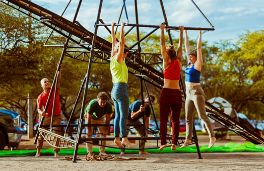 O resultado, segundo ele, é uma coreografia operária que revela sons, encaixes e estruturas invisíveis que antecedem o espetáculo. “É um ritual que dá a ver a espessura do ferro que segura a lona, o peso da estaca que a mantém de pé, suas equações estruturais, seus barulhos não musicais, seus encaixes únicos, e aquilo tudo que vem antes do salto, do voo, do frio na barriga”, completa.