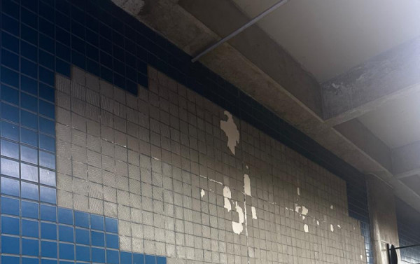 1) Há várias paredes com as pastilhas soltas ou faltando pedaços. Essa questão não é (ou era) exclusiva do Terminal Central. Na Estação Galeria a situação era tão grave que houve até reclamação do Palácio do Buriti, e ela agora está passando por uma reforma.