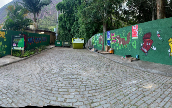 Foram feitas melhorias no local, incluindo um grafite que reforça a importância da reciclagem e sinaliza a separação correta dos materiais descartados | Foto: Divulgação